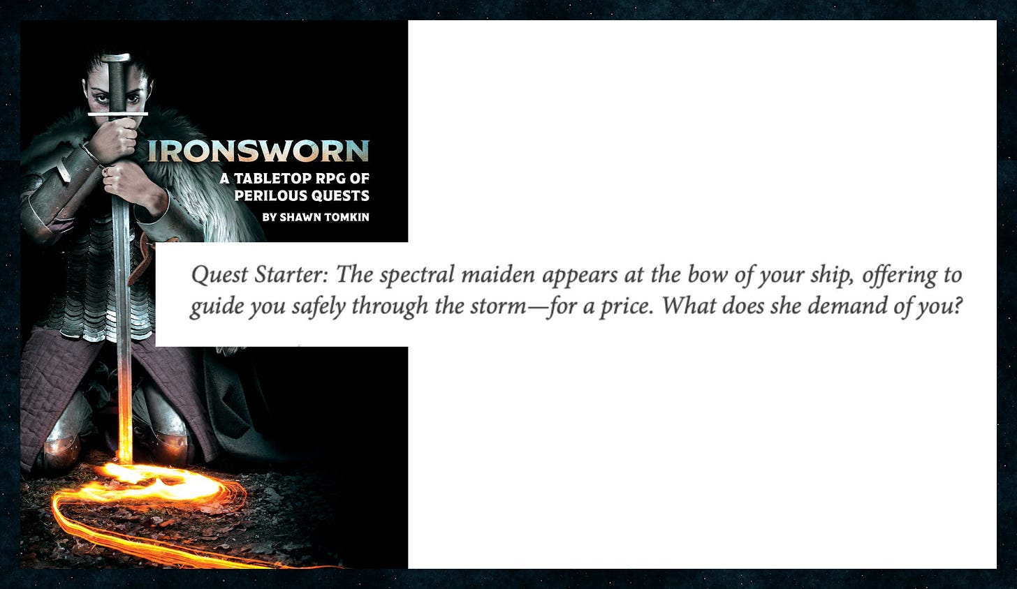 Ironsworn is a low fantasy tabletop roleplaying game designed by Shawn Tomkin. In contrast to many other popular TTRPGs, it’s optimized for solo and small group play.
